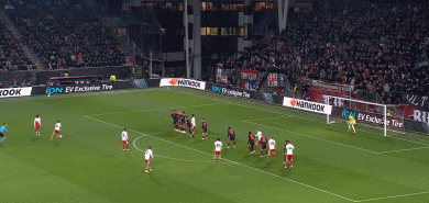 第4分钟,卡鲁阿尼任意球攻门,皮球未能越过人墙