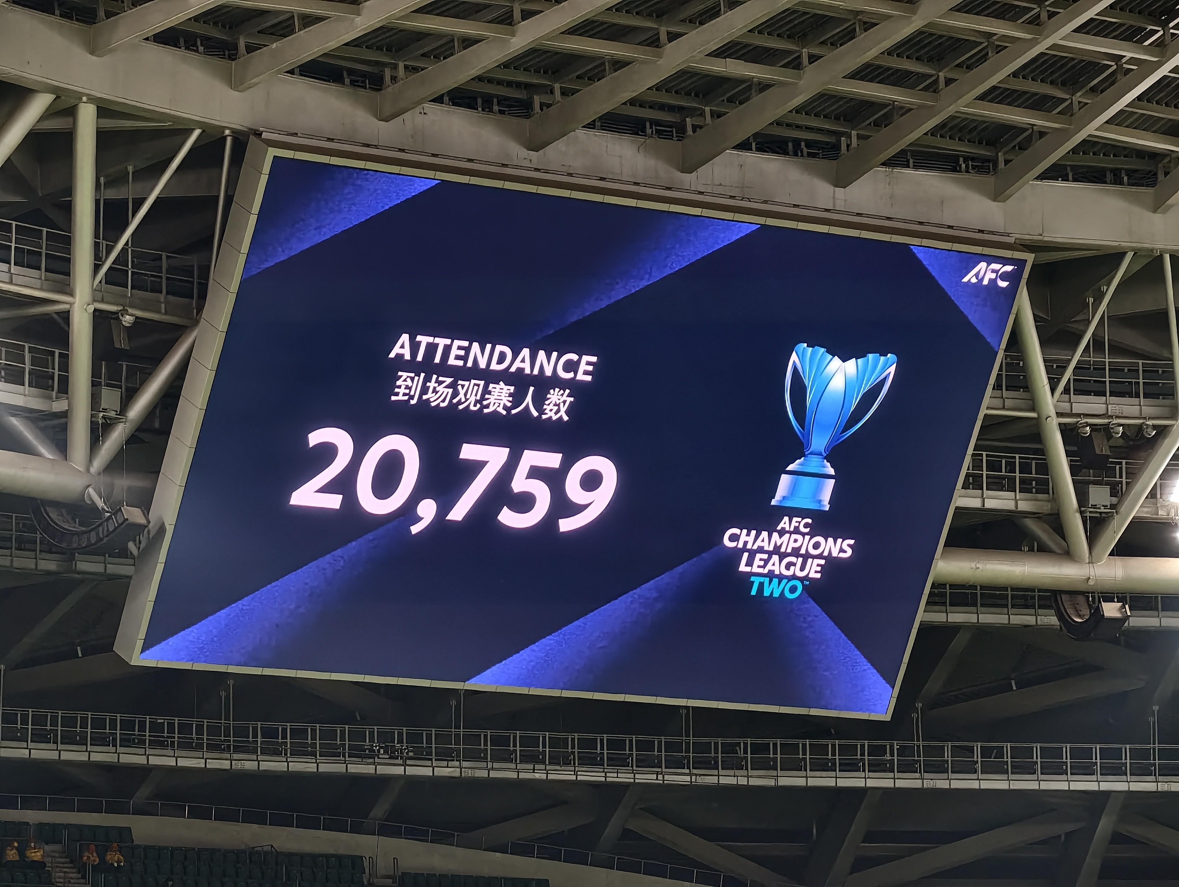 第89分钟,20759人!现场大屏幕给出本场比赛观战人次