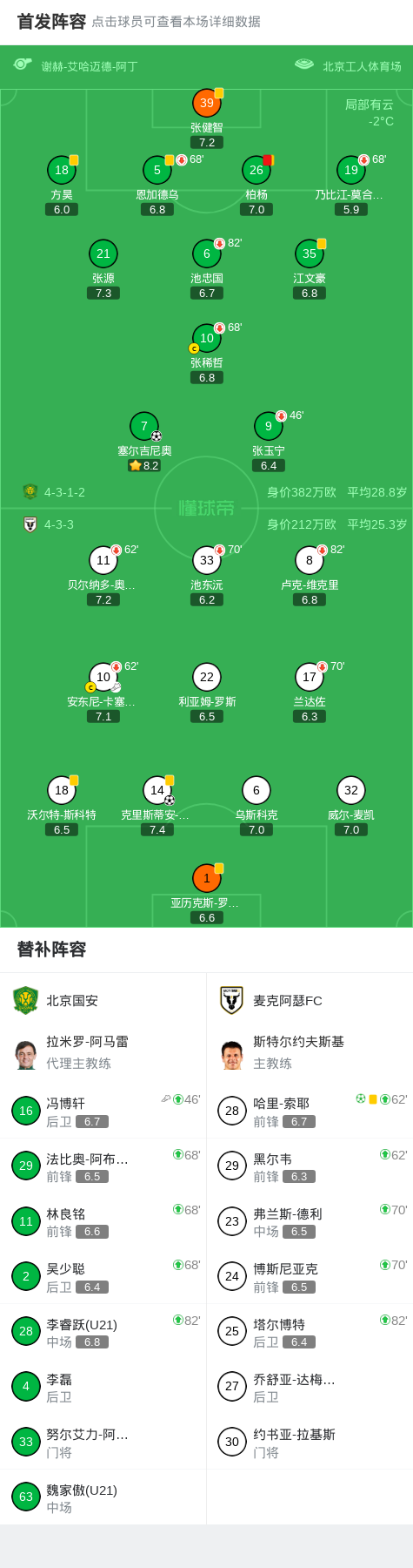 北京时间12月11日亚足联冠军联赛二级联赛 小组赛 第6轮,北京国安对阵麦克阿瑟FC。北京国安塞尔吉尼奥破门。麦克阿瑟FC克里斯蒂安-波波维奇破门,哈里-索耶破门。最终比分北京国安 1-2 麦克阿瑟FC。